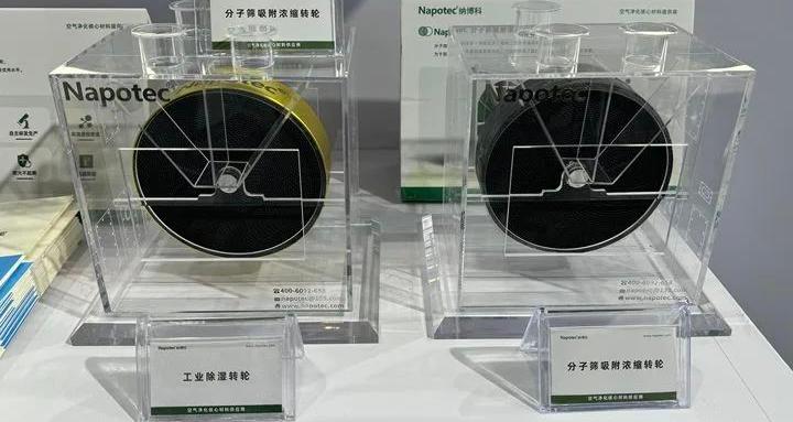 沸石分子篩轉輪,是將分子篩吸附材料附著于蜂窩狀多孔載體上制備而成的一種轉輪吸附設備。沸石分子篩轉輪通過吸附濃縮法高效吸附VOCs,適用于低濃度、大風量的VOCs處理。